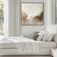 Bedroom Artwork Print Framed Canvas Brown Cream Abstract