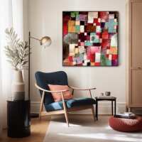 Large Colourful Paul Klee Abstract Wall Art Framed Canvas Print of Polyphonic Architecture Painting - 100cm x 100cm