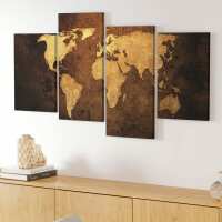 Old World Map - Brown Cream Canvas 4 Panel