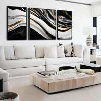 Extra Large Black Gold Framed Wall Art - Modern XXL Set 3 Canvas - 212cm Wide