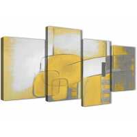 Mustard Yellow Grey Painting Abstract Canvas Wall Art 4 Panel / medium