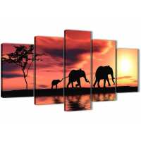 African Sunset Elephants Landscape Canvas 5 Panel / medium