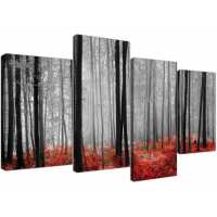 Black White Red Grey Forest Woodland Trees Canvas 4 Panel / medium