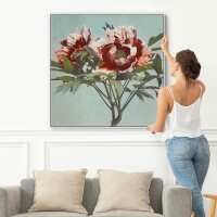 Vintage Japanese Pink Floral Wall Art Framed Canvas Print of Tree Peony Flowers Painting - 100cm x 100cm