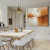 Orange Rust Abstract Framed Artwork - Smouldering Horizon XL : 100x84cm