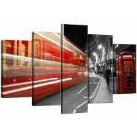 Black White Red London Bus Street Scene Cityscape Canvas 5 Panel / medium