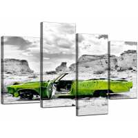 Abstract Lime Green Grey Car Desert Landscape Canvas 4 Panel / medium
