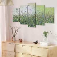 Green White Flowers Abstract Floral Canvas 5 Panel / medium