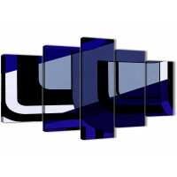 Navy Blue Abstract Painting Canvas Wall Art 5 Panel / medium