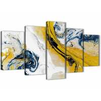 Mustard Yellow and Blue Swirl Living Room Canvas Pictures Accessories - Abstract Print 5 Panel / medium