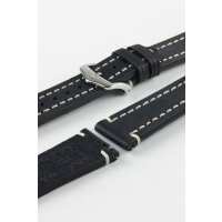 Hirsch LIBERTY Black Leather Watch Strap 22mm/20mm / 120mm/100mm / Silver Buckle