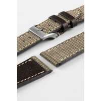 JPM Vintage Canvas Watch Strap with Leather Keepers - GREY 18mm/16mm / 120mm/70mm / Brushed Buckle