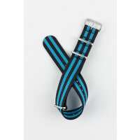 Nylon Watch Strap in BLACK with BLUE Stripes 18mm/18mm / 265mm