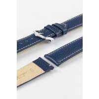 Hirsch KANSAS Buffalo-Embossed Calf Leather Watch Strap in BLUE with White Stitch 16mm/14mm / 120mm/80mm / Silver Buckle