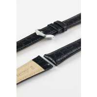Hirsch ARISTOCRAT Black Crocodile Embossed Leather Watch Strap 16mm/14mm / 110mm/70mm / Silver Buckle