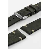 RIOS1931 BEDFORD Genuine Vintage Leather Watch Strap in BLACK 18mm/16mm / 114mm/82mm / Silver Buckle