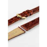 Hirsch GENUINE CROCO Shiny Crocodile Leather Watch Strap in GOLD BROWN 17mm/16mm / 120mm/80mm / Gold Buckle