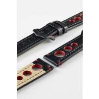 Hirsch Rally Strap Natural Leather Racing Watch Strap in BLACK / RED 24mm/22mm / 120mm/80mm / Black Buckle