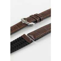 Hirsch PAUL Alligator Embossed Performance Watch Strap in BROWN 21mm/20mm / 120mm/80mm / Silver Buckle