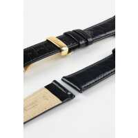 Hirsch CROCOGRAIN Crocodile Embossed Leather Watch Strap in BLACK 18mm/16mm / 120mm/80mm / Gold Sport Deployment Clasp