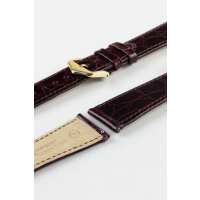 Hirsch GENUINE CROCO Shiny Burgundy Crocodile Leather Watch Strap 12mm/10mm / 110mm/70mm / Gold Buckle