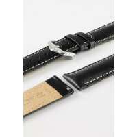 Hirsch RALLY Natural Leather Racing Watch Strap in BLACK 20mm/18mm / 120mm/80mm / Silver Buckle