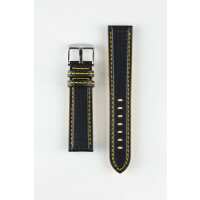Morellato BIKING Carbon Fibre-Embossed Calfskin Leather Watch Strap in BLACK with YELLOW Stitching 20mm/18mm / 120mm/74mm / Silver Buckle