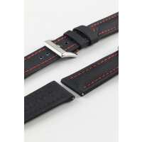 Artem Straps Classic Black Sailcloth Watch Strap with Red Stitching 22mm/20mm / 115mm/75mm / Brushed Buckle