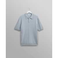 Naples - Pale Blue Textured Knitted Polo Shirt L