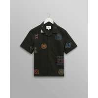 Didcot - Navy Doodle Embroidered Short-Sleeve Shirt XL