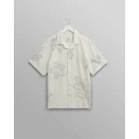 Didcot - Ecru And Blue Floral Embroidered Short-Sleeve Shirt M