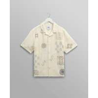 Didcot - Ecru Doodle Embroidered Short-Sleeve Shirt M