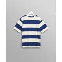 Dean - Blue And Ecru Stripe Textured Organic Cotton T-Shirt L