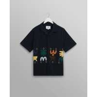 Didcot - Navy And Multicolour Bold Doodle Applique Short-Sleeve Shirt M