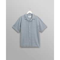 Didcot - Blue Open Weave Cotton Short-Sleeve Shirt L