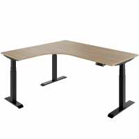 TELDRA Pro, 3-Motoren-Winkelschreibtisch | 1800 x 1600 mm, elektrisch höhenverstellbar, Bernsteineiche Schwarz / Winkel links