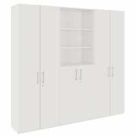 PRO Schrankwand | 6 OH, 2400 x 2250 mm, Weiß Stahlsockel (inkl. Verstellgleiter) / Zylinderschloss mit Griffen Z1