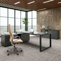 ART Chefschreibtisch | 2240 x 1800 mm, Integriertes Lowboard, Dunkelgrau