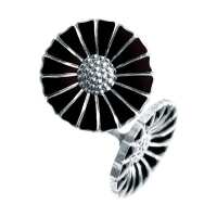 Georg Jensen Sterling Silver Black Enamel Daisy Stud Earrings