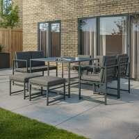 Phoebe 8 Seat Aluminium Cube Dining Set with 2 Seat Sofa, 2 Chairs 2 Side Chairs and 2 Stools - Square Table in Graphite Grey