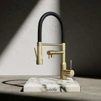 Wodar Dual Flex Hose Kitchen Sink Mixer Brushed Brass