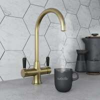 Holborn Traditional 3 in 1 Brushed Brass Black Handle Boiling Hot Water Tap