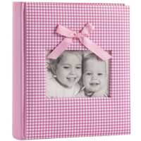 Baby Gingham Fabric with Bow 6x4.5 Slip-in Memo Photo Album - Pink