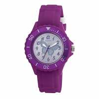 Childrens Tikkers Watch with Purple Silicone Strap and Silver Glitter Butterfly Face - TK0035