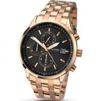 Sekonda Men's Quartz Watch with Black Dial Chronograph Display and Rose Gold Stainless Steel Bracelet 1059