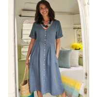 Woolovers BUTTON THROUGH LINEN DRESS W188L size: 8, colour: DENIM BLUE