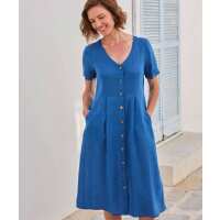 Persian Blue V Neck Button Through Linen Dress W388L Women's | Size 8 | V Neck Button Through Linen Dress W388L Moshulu