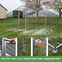 Alphapet® 4M Series 4m x 6m (32mm) Heavy Duty Walk In Galvanised Steel Chicken Run Coop