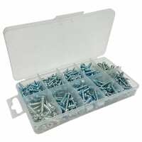 Assortment of BZP Slotted Pan Head Self Tapping Screws, 375 Pieces in a 10 Compartment Carry Case.