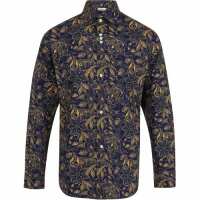 Navy & Gold Paisley Floral Print Regular Fit Cotton Shirt